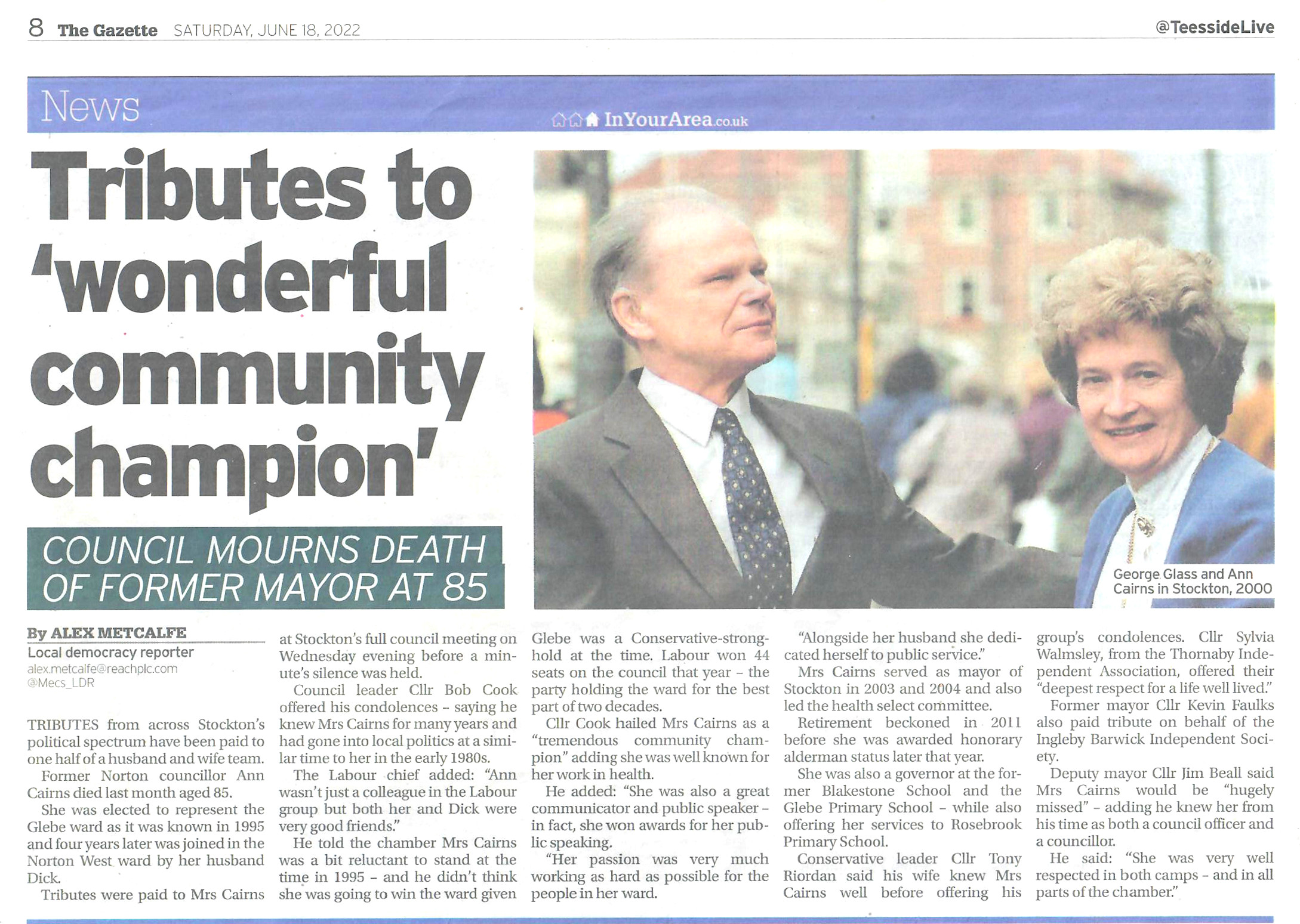 Mum passed away in 2020 but I can be proud that she was mayor of Stockton for a year ! News story when they retired.