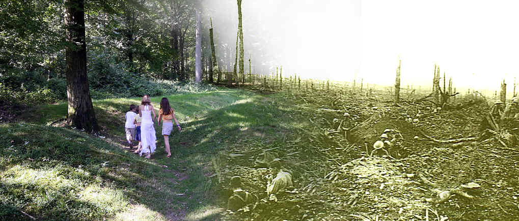 The whole of Delville Wood is now a regarded as a military cemetary with all the rides marked out and has a number of memorials. There is a South African Commemorative museum and an information centre. The Delville Wood cemetary is across the road.