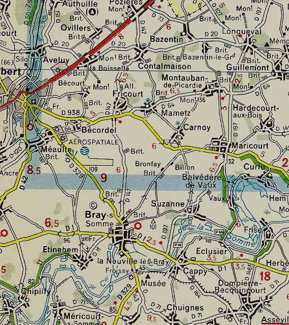 A few heavy shells fell on Bray, some 8km behind the front line.