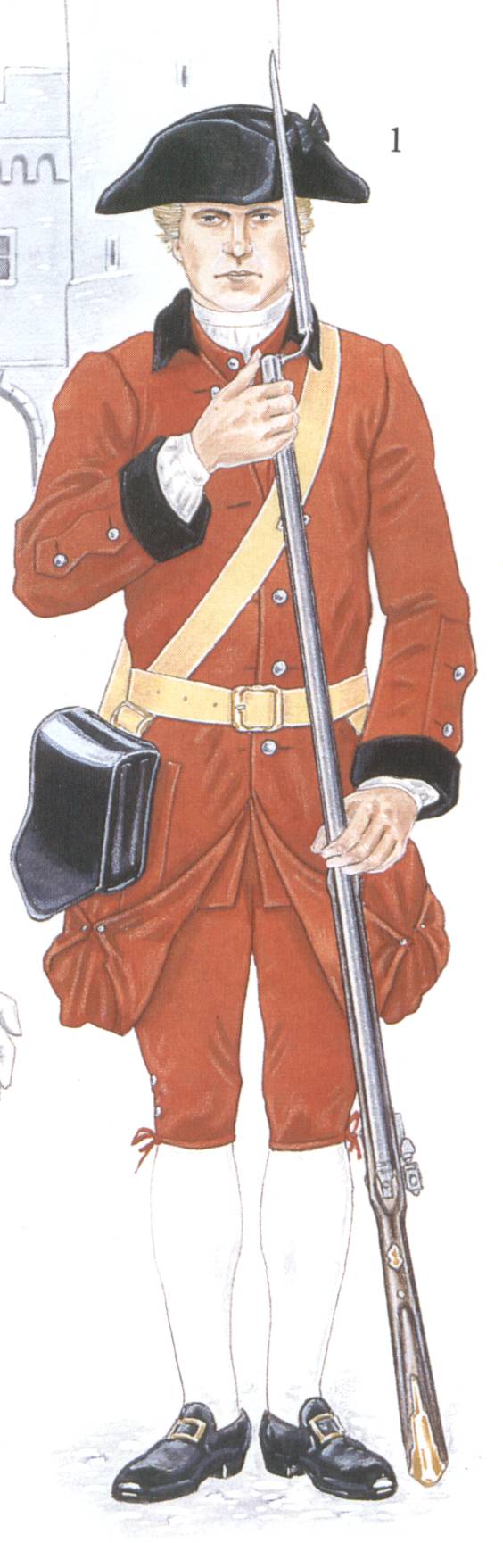 In the 1778 inspection just after they had been called up, the firearms were those they had received in 1759, the time of the last invasion alarm, although they were still described as good condition. The accoutrements (belts, pouches and slings) were described as "bad" condition, presumably also 20 years old. The clothes were all new or a year old. The inspection report was mostly very good, although their marching was very slow. The men were "a very good body of men, straight and well limbed, some few short, but the Grenadier company very fine". However the non-commissioned officers who should have set a good example were "some very old and very indifferent in their appearence" !
